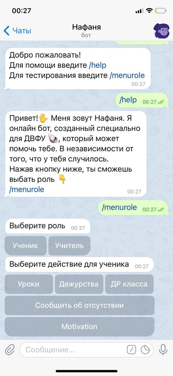 Чтобы ознакомиться с остальными функциями, советую попробовать самим протестировать бота в телеграмме: https://t.me/school_dvfu_bot